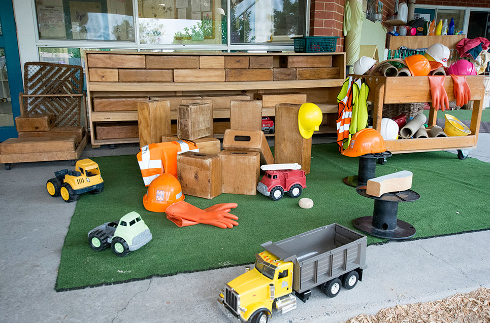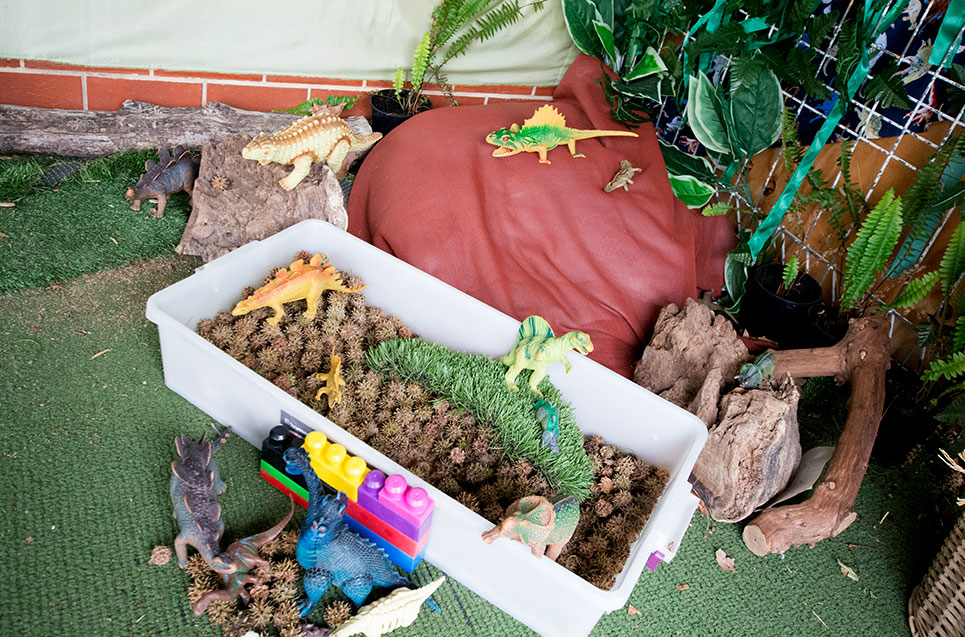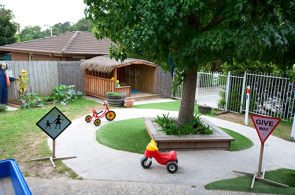 The centre provides an indoor/outdoor curriculum that provides the children the opportunity to choose where they want to play with supervision from the educators. The outdoors allows the children to climb, run, jump, ride bikes, be part of Gymbaroo activities and also learn about natural environments and connection to the land.